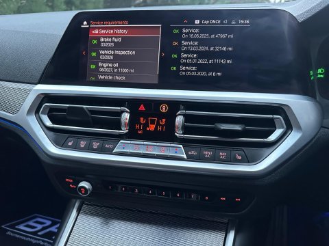 This 2020 BMW 3 Series 330i M Sport boasts a full dealership service history, ensuring its excellent provenance. This Euro 6 compliant model features a 2.0L petrol engine and comes with a 12 month warranty and 12 months MOT provided on purchase. Inside, you'll find the M Sport trim offering a heated steering wheel for those colder mornings, and both driver and front passenger lumbar support for enhanced comfort. Entertainment is provided by the HiFi Loudspeaker System and the BMW Live Cockpit Professional, which includes Bluetooth connectivity. For your comfort, the vehicle is equipped with automatic three zone air conditioning, also known as climate control. The BMW 3 Series 330i M Sport offers impressive performance, accelerating from 0 to 62mph in just 5.8 seconds, demonstrating its dynamic capabilities. This model also benefits from low CO2 emissions, making it a more environmentally conscious choice compared to many similar vehicles. These highlights, combined with its comprehensive service history and included warranty and MOT, present a compelling package for any discerning driver.-