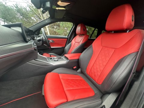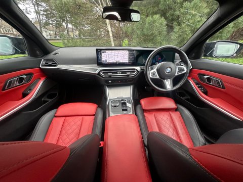 This 2023 BMW 3 Series M340d presents an exceptional opportunity with its remarkably low mileage of just 33,000 miles for its age. Powered by a sophisticated 3.0L Diesel Hybrid engine and featuring a capable Four Wheel Drive system, this Euro 6 compliant model offers a blend of performance and efficiency. Inside, you'll find the desirable Comfort Pack, which includes convenient Keyless Entry and a heated steering wheel for those cooler mornings. Further enhancing the experience is the premium Harman Kardon Surround Audio Sound System and a spacious Panoramic Glass Sunroof that can be opened for an airy feel. The cabin is appointed with luxurious BMW Individual Merino Leather in a striking Fiona Red and Black combination, complemented by a heated steering wheel. This particular M340d stands out from other similar vehicles due to its thoughtful specification and excellent condition. The inclusion of the Comfort Pack, Harman Kardon audio, and the opening Panoramic Glass Sunroof significantly elevates the driving and ownership experience. These features, combined with the powerful yet economical diesel hybrid powertrain and the all-weather confidence of Four Wheel Drive, make this BMW 3 Series a compelling choice for those seeking a premium and well equipped tourer.-