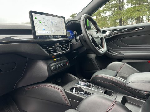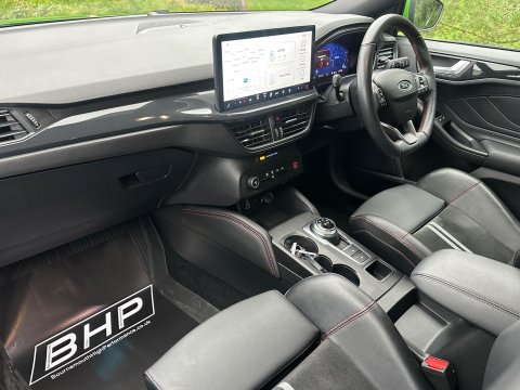 This 2022 Ford Focus ST is a remarkable find, boasting exceptionally low mileage of just 14,500 miles from its single owner. This Euro 6 compliant 2.3L petrol engine model comes with a full service history and a 12 month warranty, alongside a 12 month MOT provided on purchase, offering complete peace of mind. Inside, you'll appreciate the premium centre console featuring a short sliding armrest, open cup holder, and 12V power points front and rear, complemented by a stylish E shifter rotary bezel gearshift knob. Experience the thrill of its impressive acceleration, reaching 0-62mph in a swift 5.7 seconds, a performance that sets it apart from many other vehicles in its class. This Focus ST also includes convenient features such as a rear view camera with parking assistance, wireless phone charging, and the Ford Key Free System for effortless keyless entry and start. These highlights demonstrate the superior specification and condition of this particular Ford Focus ST.-