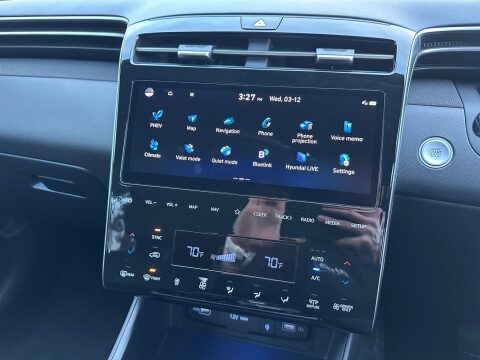 This 2024 Hyundai TUCSON h T-GDi Premium is a superb example, having had only one owner from new. This Euro 6 compliant, Four Wheel Drive model boasts a 1.6 litre Petrol Plug-in Hybrid engine, offering an efficient and capable driving experience. It comes equipped with a 7 Pin Type 2 charging cable, Smart Adaptive Cruise Control with Stop and Go functionality, and Blind Spot Collision Avoidance Assist for enhanced safety and convenience. Inside, you'll appreciate the comfort of heated front seats and seamless phone connectivity with Apple CarPlay. The Premium trim level ensures a well appointed interior, and this TUCSON also benefits from a low insurance group, making it an economical choice. Its generous boot space provides ample room for all your luggage or shopping needs, indicating its practicality for everyday use and longer journeys. These features combined demonstrate how this Hyundai TUCSON stands out from other vehicles in its class, offering a compelling package of technology, comfort, and value.-