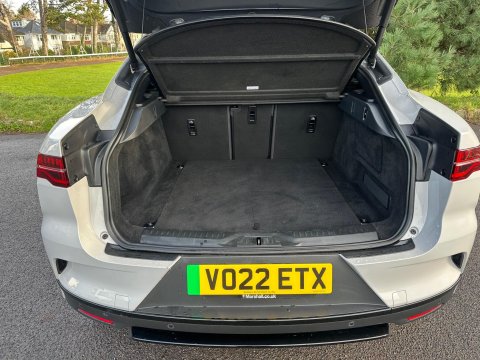 This 2022 Jaguar I-PACE 400 HSE Black offers exceptional provenance with a full dealership service history and a clear vehicle history check, all supported by a 12 month warranty and 12 months MOT provided on purchase. This electric, Four Wheel Drive model boasts a substantial 90 kWh battery, providing a maximum range of 277 miles when new. Its HSE Black trim level is enhanced by a Premium Black Pack, Matrix LED Headlights with Signature DRL, and a rear camera for parking assistance. For driver convenience and safety, it features Adaptive Cruise Control with Steering Assist and Blind Spot Assist. With only 31,000 miles, this I-PACE is remarkably low mileage for its age. Experience exhilarating performance with the Jaguar I-PACE, capable of accelerating from 0-60mph in a swift 4.5 seconds, demonstrating its superior capability compared to many other vehicles. The large boot space offers practicality for everyday needs and longer journeys. Charging is convenient, with a full charge at home taking approximately 12 hours and 36 minutes using a 7kW charger, while rapid public charging can achieve 80% capacity in just 50 minutes, ensuring you can stay on the move with minimal downtime.-