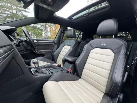With only 23,000 miles on the clock, this 2020 Volkswagen Golf R offers an exceptional opportunity to own a performance hatchback with very low mileage for its age. The Golf R, with its 2.0L petrol engine and four-wheel drive system, delivers a thrilling driving experience. This particular model boasts a comprehensive full service history and comes with a clear vehicle history check, providing peace of mind. It also benefits from 12 months warranty and a fresh 12 months MOT will be provided on purchase. The car is further enhanced by desirable features such as a panoramic sunroof, Dynamic Chassis Control (DCC), an Akrapovic Titanium Sport Exhaust System, carbon fibre door mirrors, and stylish 19in Pretoria alloy wheels. The Golf R's rapid acceleration, achieving 0-60mph in just 4.4 seconds, demonstrates its superior performance capabilities compared to similar vehicles. In addition, the vehicle offers a large boot space, making it a practical choice for everyday use. The Golf R also meets Euro 6 emission standards, combining performance with environmental consciousness.-