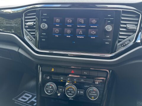 This 2021 Volkswagen T-Roc TSI EVO Black Edition boasts a full service history and has had only one owner, offering excellent provenance. It features a responsive 1.5 litre petrol engine, meeting Euro 6 emissions standards. Inside, you'll find the Composition Media System with Bluetooth connectivity, a dusk sensor for automatic headlights, and a 2Zone electronic climate control system for your comfort. The Black Edition trim also includes striking LED headlights and Adaptive Cruise Control for a more relaxed driving experience. The T-Roc TSI EVO Black Edition accelerates from 0 to 62mph in a swift 8.6 seconds, demonstrating its capable performance. This particular vehicle comes with 12 months of warranty and a 12 month MOT provided on purchase, ensuring peace of mind. These features, combined with its comprehensive service history and single owner status, highlight how this Volkswagen T-Roc stands out as a well maintained and desirable option.-